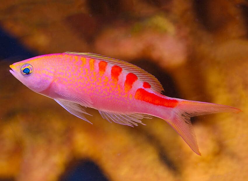 This striking coloration makes Lori’s Anthias a visually appealing species in marine aquariums.