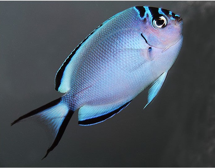 Elegant and truly reef safe, the female Watanabei Angel features soft grey-blue colouring with subtle black edging and graceful lines. Peaceful and active, it’s ideal for mixed reef tanks and can be kept singly or as a pair with a male. A deepwater species, it thrives with high oxygen, strong flow, and stable water quality. A top choice for reef keepers wanting angelfish without risk.